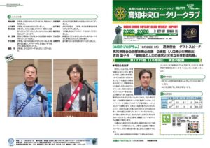 令和7年9月26発行 No.1746 [1P]第1768回(9月18日)例会の記録/出席報告/幹事報告/中央メシ [2-3P]ガバナー補佐スピーチ 高知第Ⅰ分区ガバナー補佐 二宮邦江氏(高知ロイヤルRC) [4P]ニコニ […]